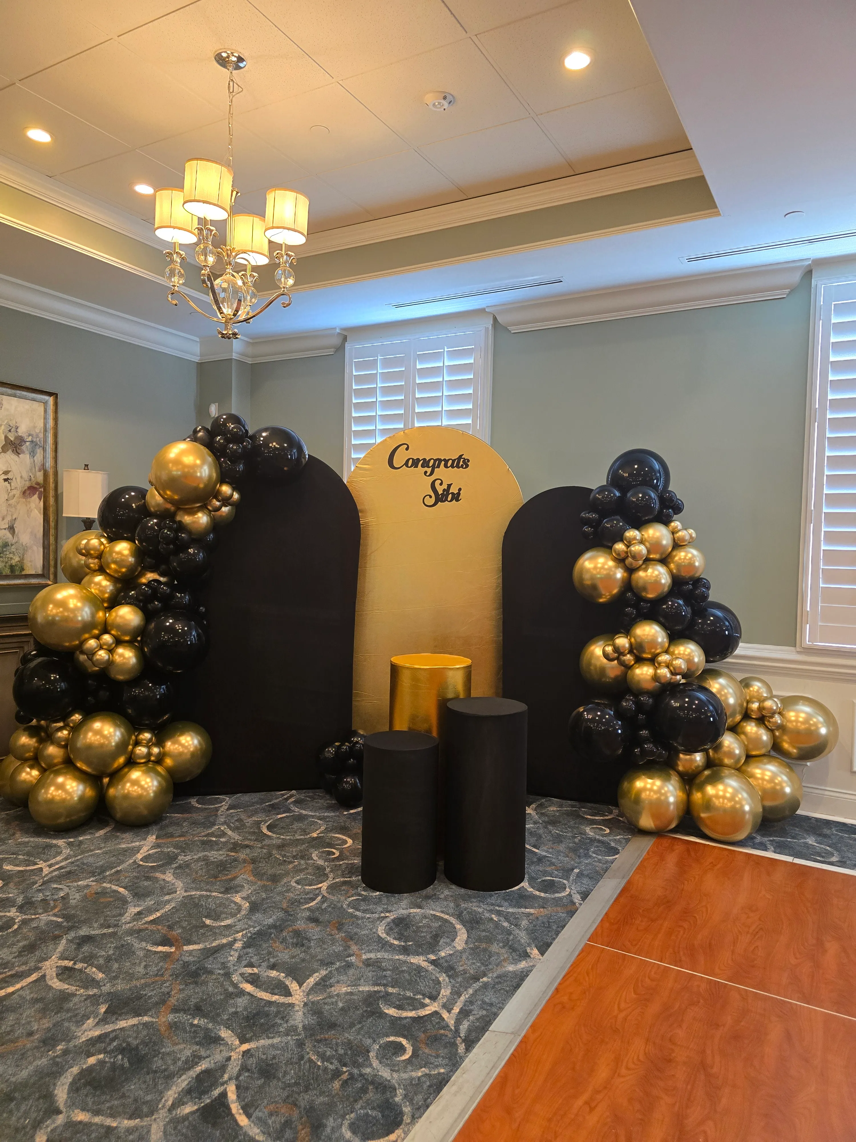 with our selection of high-quality balloon decor, flower wall rentals and backdrops.